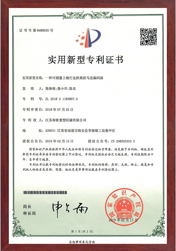 一種可測(cè)量上輥行走距離的馬達(dá)編碼器專利